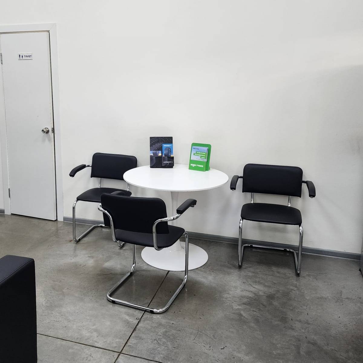 Приятно удивили работой: колеса поменяли оперативно, старые аккуратно упаковали и сложили в багажник. Видно, что мастера работают профессионально. Есть удобная зона ожидания с экраном - можно наблюдать за процессом.