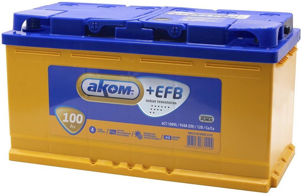 Аккумулятор AKOM +EFB 100 Ач 950 А прямая полярность