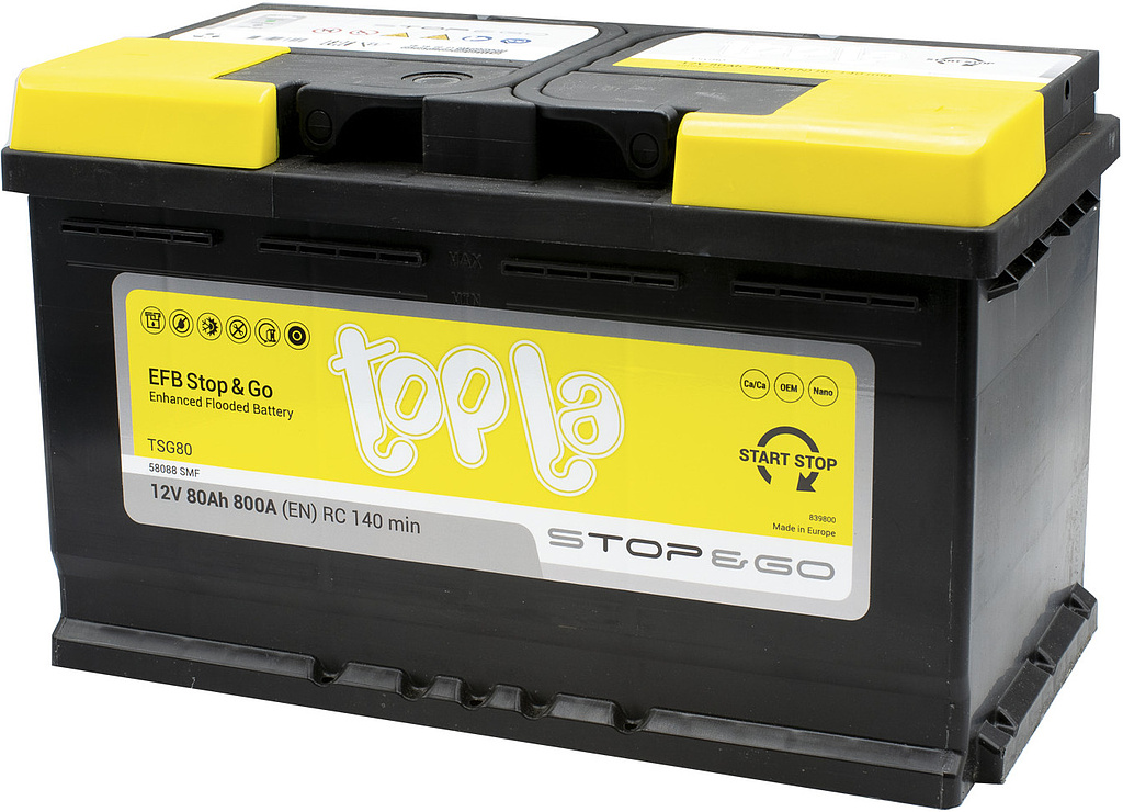 Аналоги аккумулятора Topla EFB Stop&Go (58088 SMF) 80 Ач от 800 А обратная полярность европейский тип корпуса