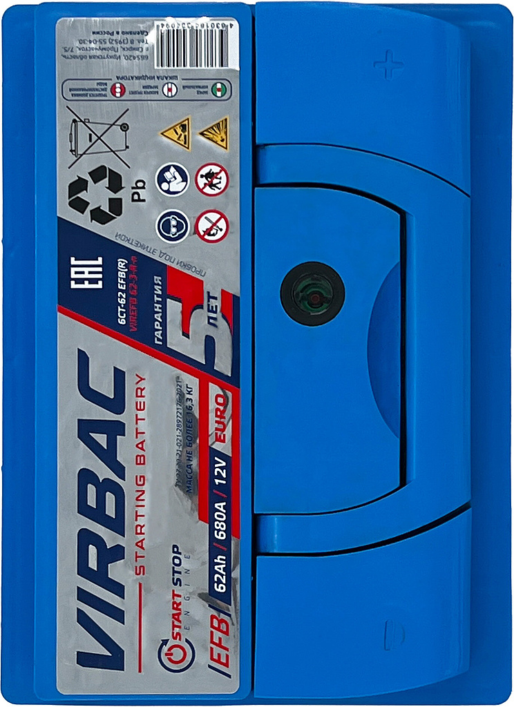 Аккумулятор VIRBAC EFB 62 Ач 680 А обратная полярность