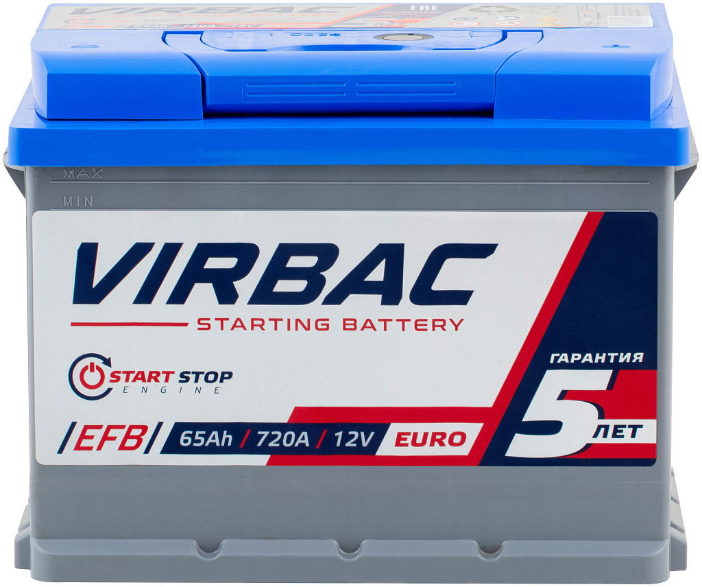 Аналоги аккумулятора VIRBAC EFB 65 Ач от 720 А обратная полярность европейский тип корпуса