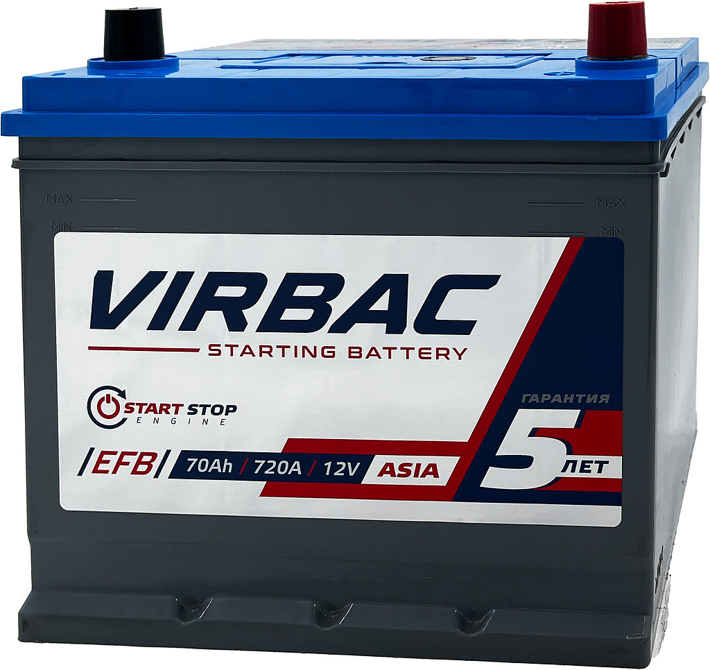 Аккумулятор VIRBAC Asia EFB 70 Ач 720 А обратная полярность