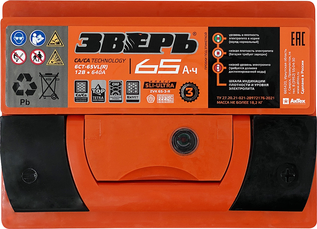 Аналоги аккумулятора ЗВЕРЬ 65 Ач от 640 А обратная полярность европейский тип корпуса